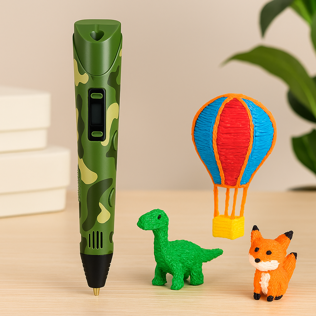 Faites découvrir à votre enfant la magie de la création en 3 dimensions grâce au Stylo 3D Camouflage DIKELANG ! Conçu pour allier sécurité, simplicité et fun, ce stylo 3D transforme chaque idée en véritable sculpture. Grâce à son design camouflage coloré et son écran LCD intégré, il offre un contrôle total de la température et de la vitesse d’extrusion.